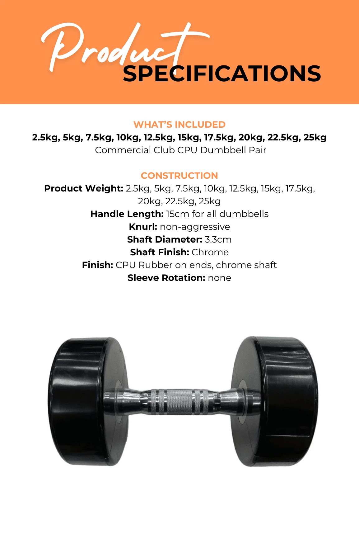 - 1 Pair 12.5kg Commercial Club CPU Dumbbell