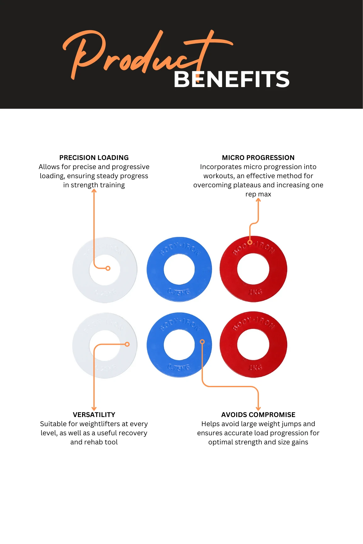 This 4kg Body Iron Fractional Weight Plate Pack provides an exceptional tool for adding precise and progressive loading to your strength training.