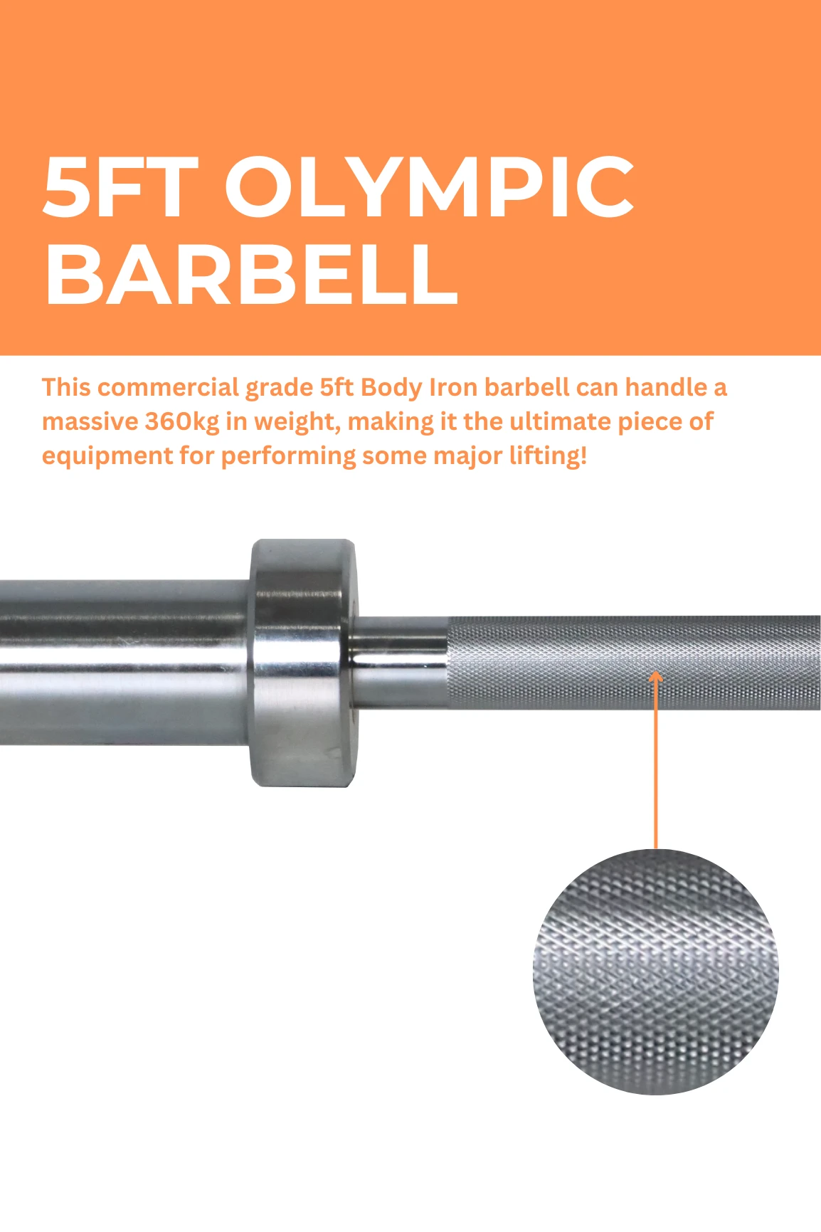 Not to be underestimated, this commercial grade 5ft Body Iron barbell can handle a massive 360kg in weight, making it the ultimate piece of equipment for performing some major lifting!