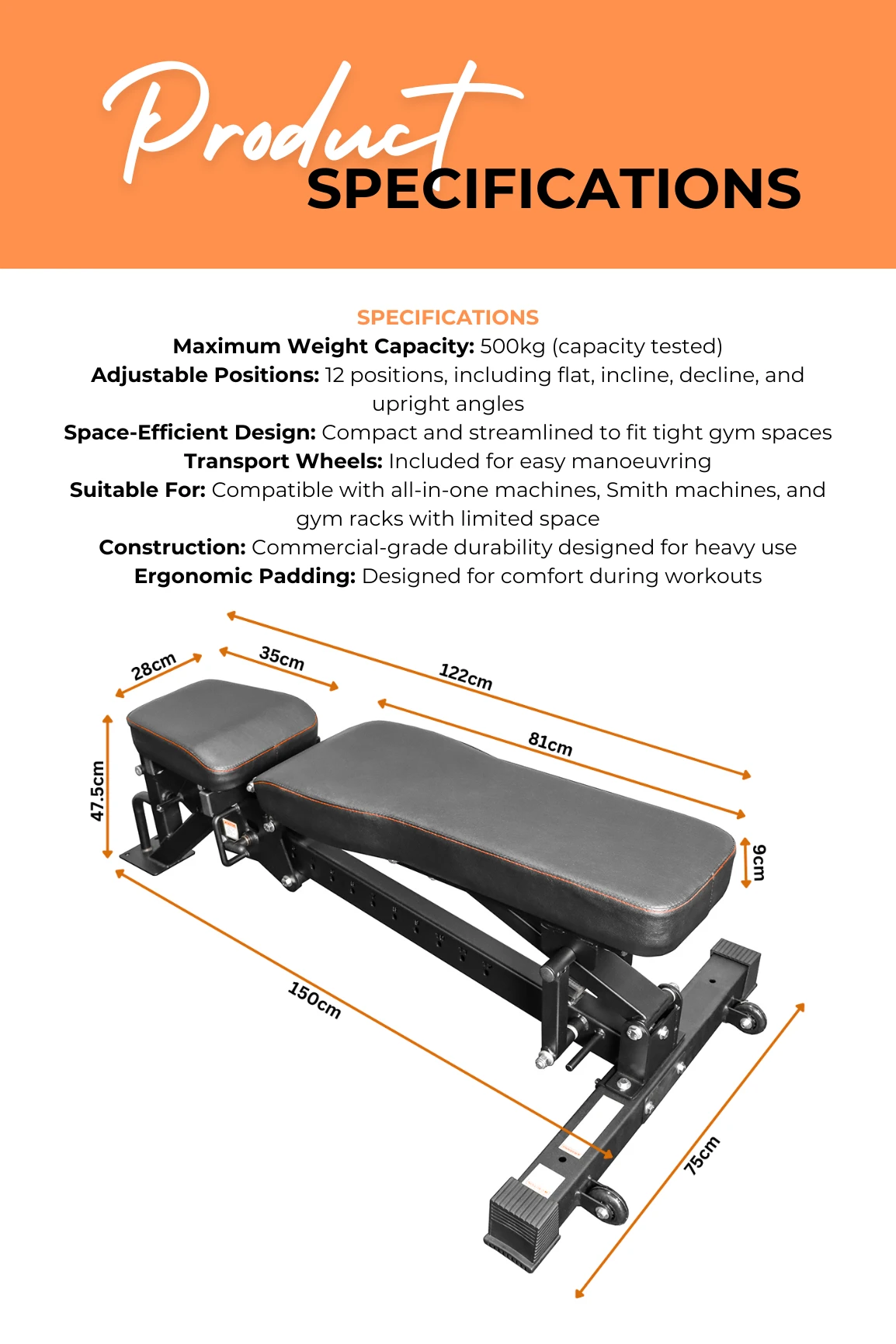 2. Perfect for All-in-One Machines & Functional Trainers: This bench is specifically designed to work seamlessly with all-in-one machines, including those equipped with Smith machines or J-hooks on racks that are positioned closer to a wall. Its ability to adjust fully to the back allows you to align the bench perfectly for Smith machine or barbell exercises, even in tight spaces.