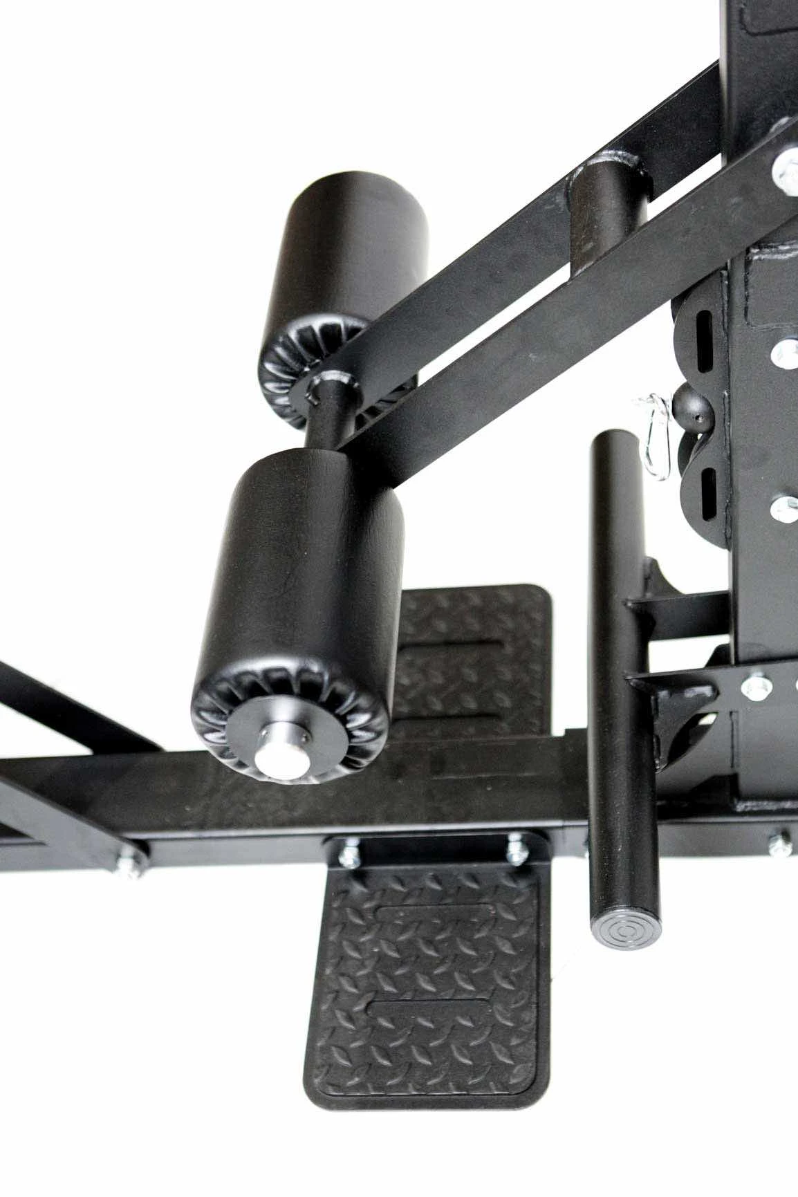 Making use of a practical plate-loading system and bearing a 180KG weight capacity, you’ll be able to dictate the intensity of your workouts. Compatible with Olympic weight plates, just load up the sleeves and your desired weight and you’re ready to get to work. It also features a sun-dial adjuster on the knee support beams to ensure the lat pull down and low row accommodates to all heights and limb lengths.