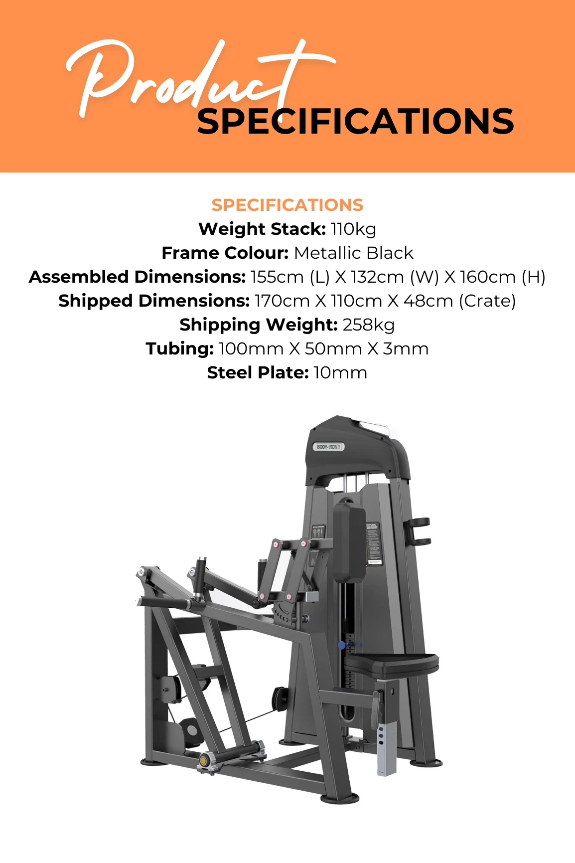 The carbon steel tubing accompanied with ultra-comfortable seat and chest support padding adds to the stability and durability of this vertical row machine. Pair this with the whopping 110kg weight stack, and you’ll be training premium style. The adjustment settings on the seat and chest support can be changed by simply pushing the yellow lever to move them up and down/backwards and forwards. There are 8 different seat level adjustments which can be used to suit all heights and limb lengths.