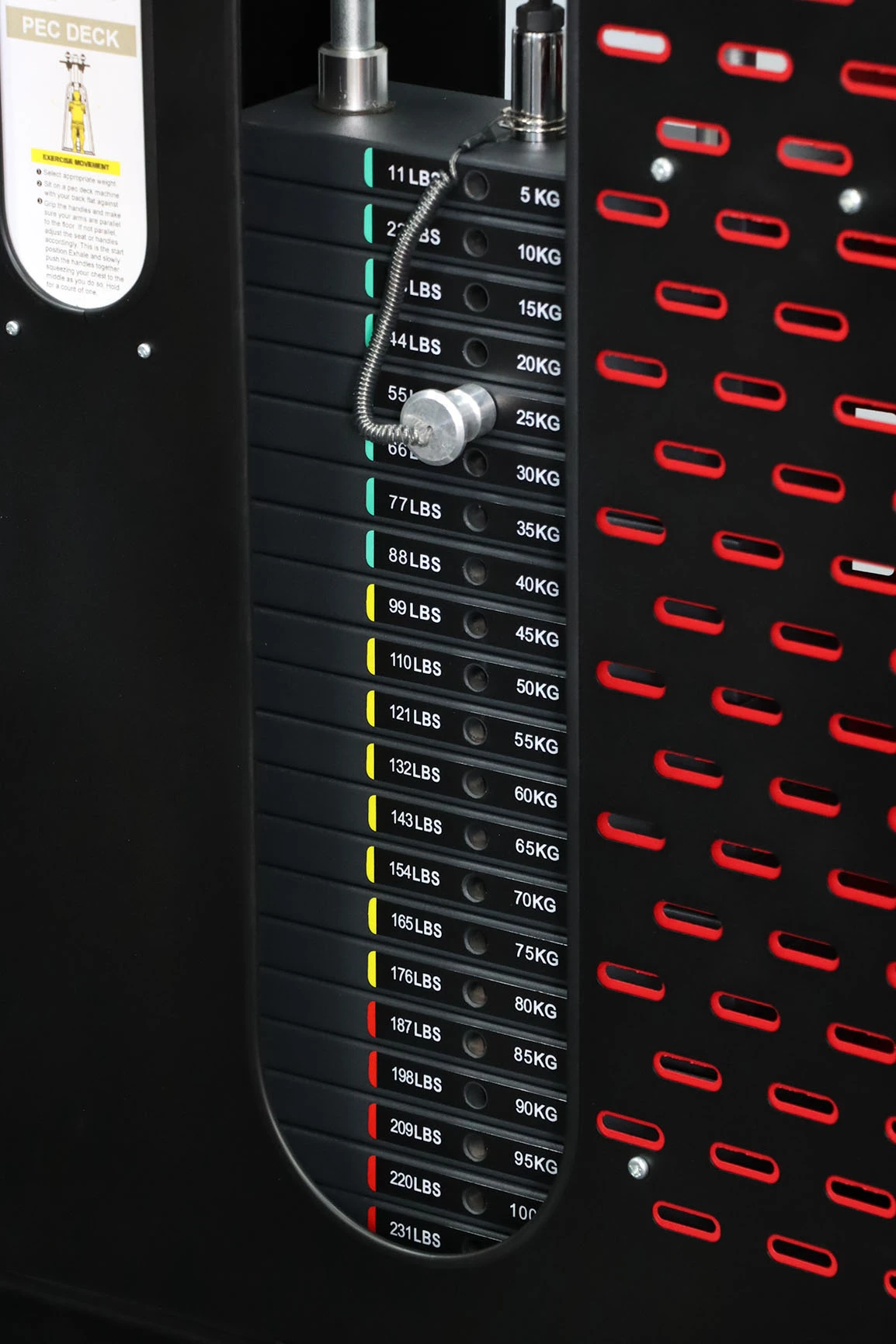 The independent adjustment crank sets on both sides not only provide different starting positions, but also make exercise variety. The long and narrow back pad can provide back support for Pec Fly and chest support for the deltoid muscle.