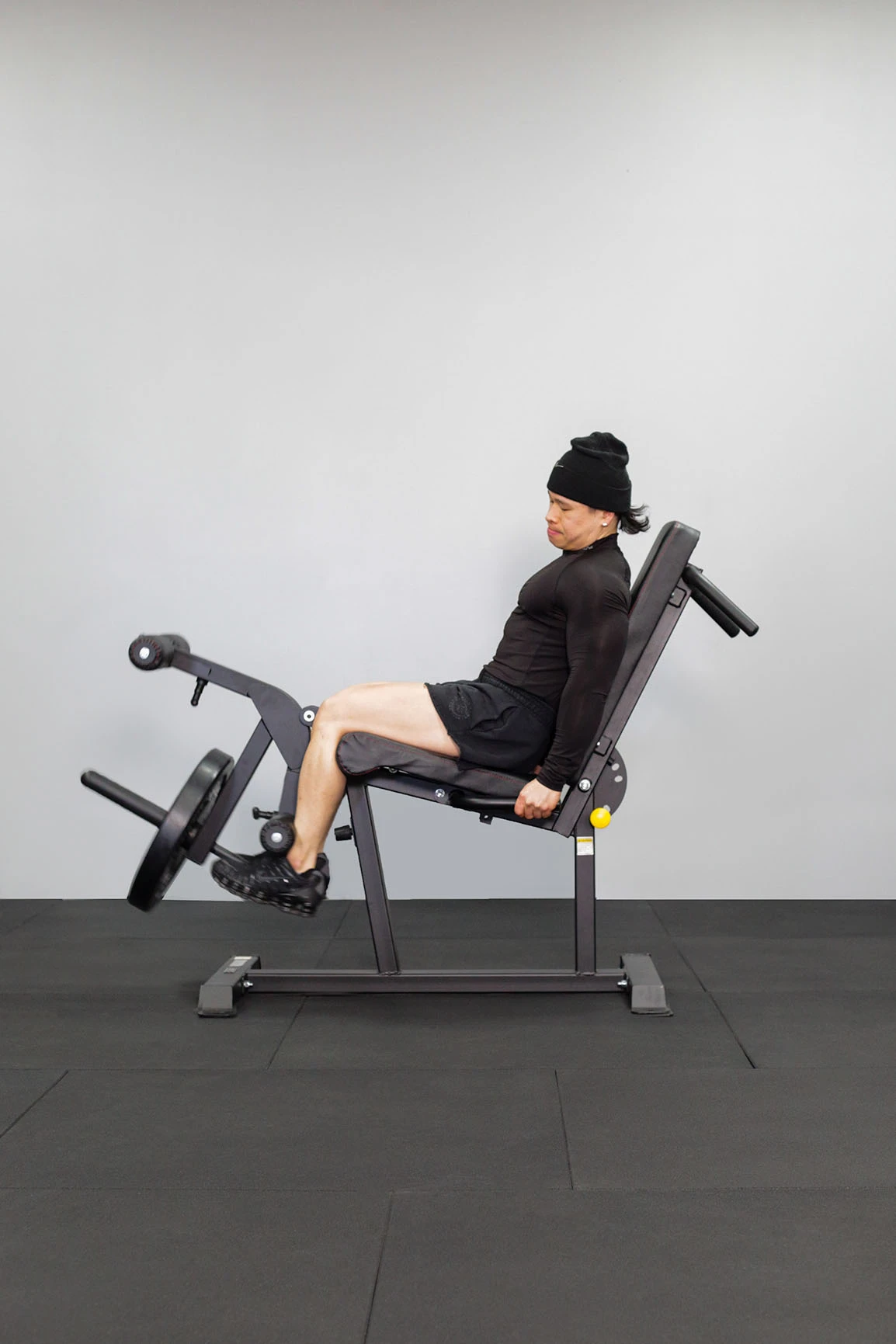 The leg extension is a great exercise from building strength and muscle mass in your thighs, yet is also an excellent method of rehabbing knee injuries and improving joint mobility.