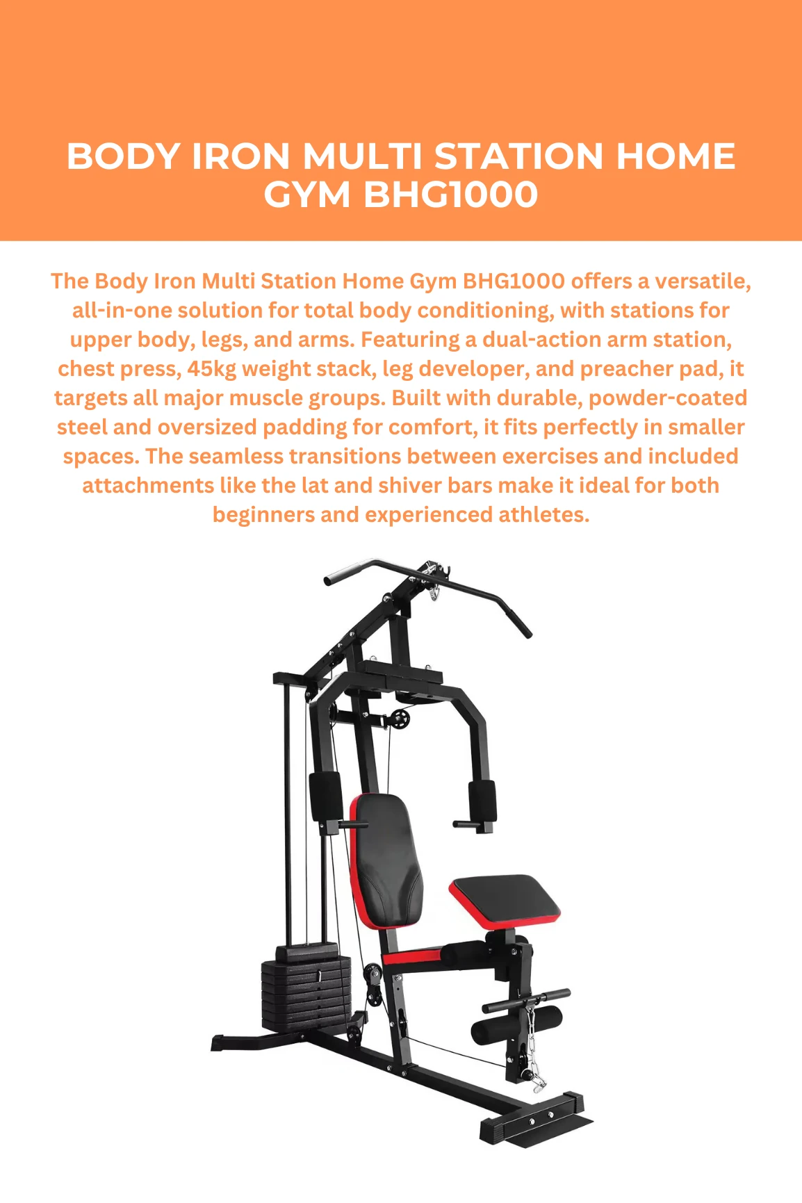 Functional and versatile, the Body Iron Multi Station Home Gym BHG1000 provides numerous exercises at your disposal enabling you to split your training sessions and focus in on specific muscle goals. If it’s an upper body, leg or arm day, there’s a place for it on the Home Gym via high and low chain-linked pulley stations.