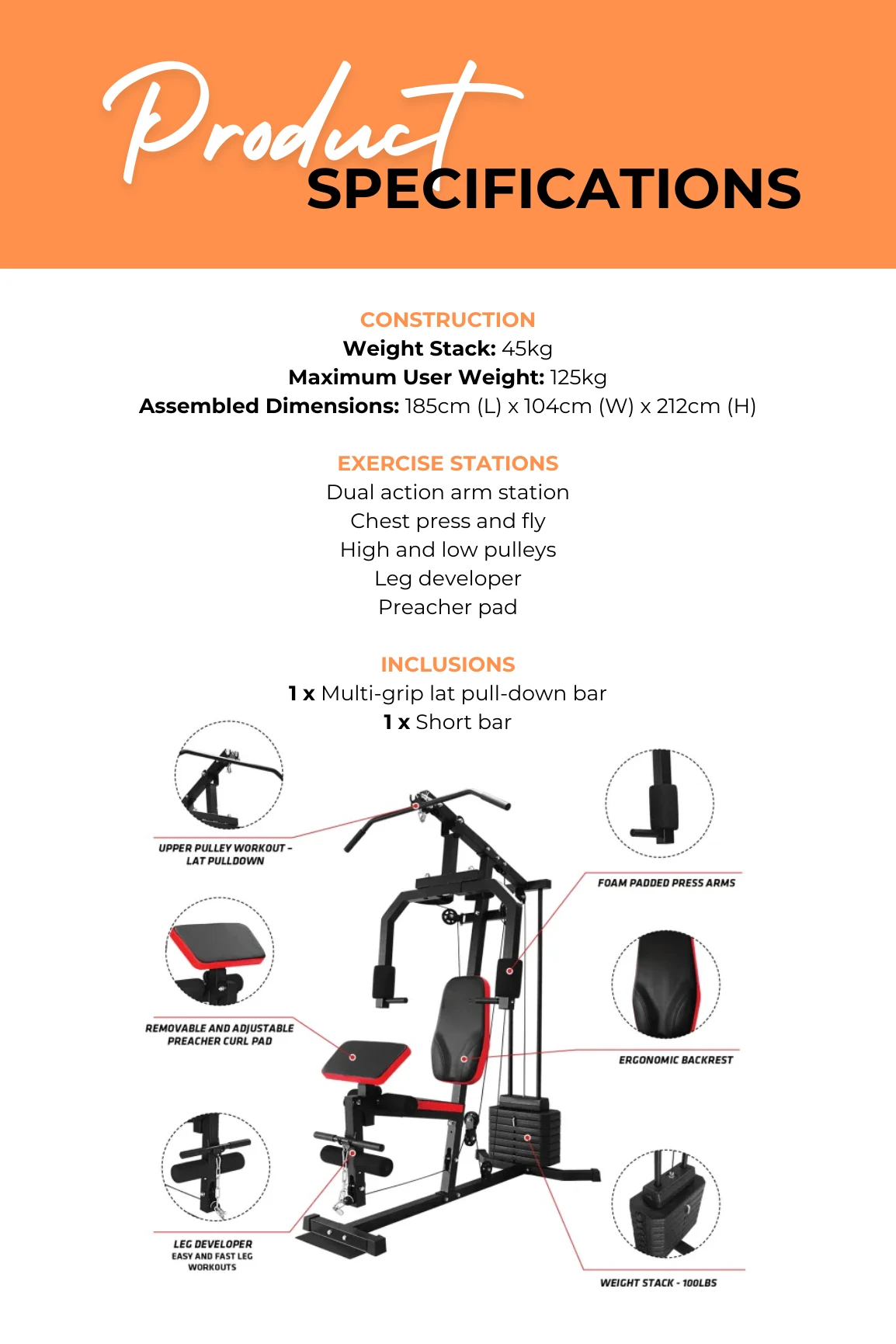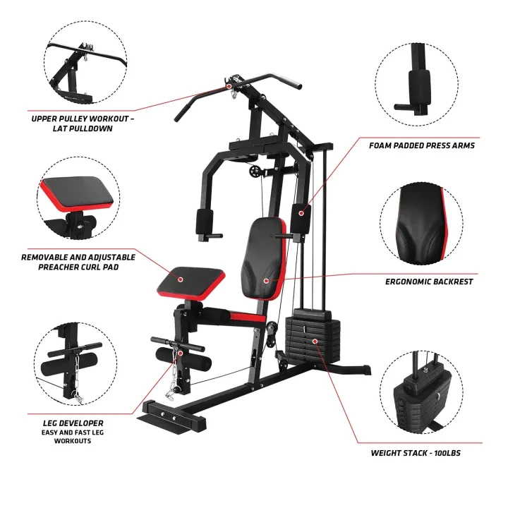 Perfect for both beginners and seasoned athletes, the multi-gym provides multiple attachments including lat bar, shiver bar for challenging workouts that target all major muscle groups.