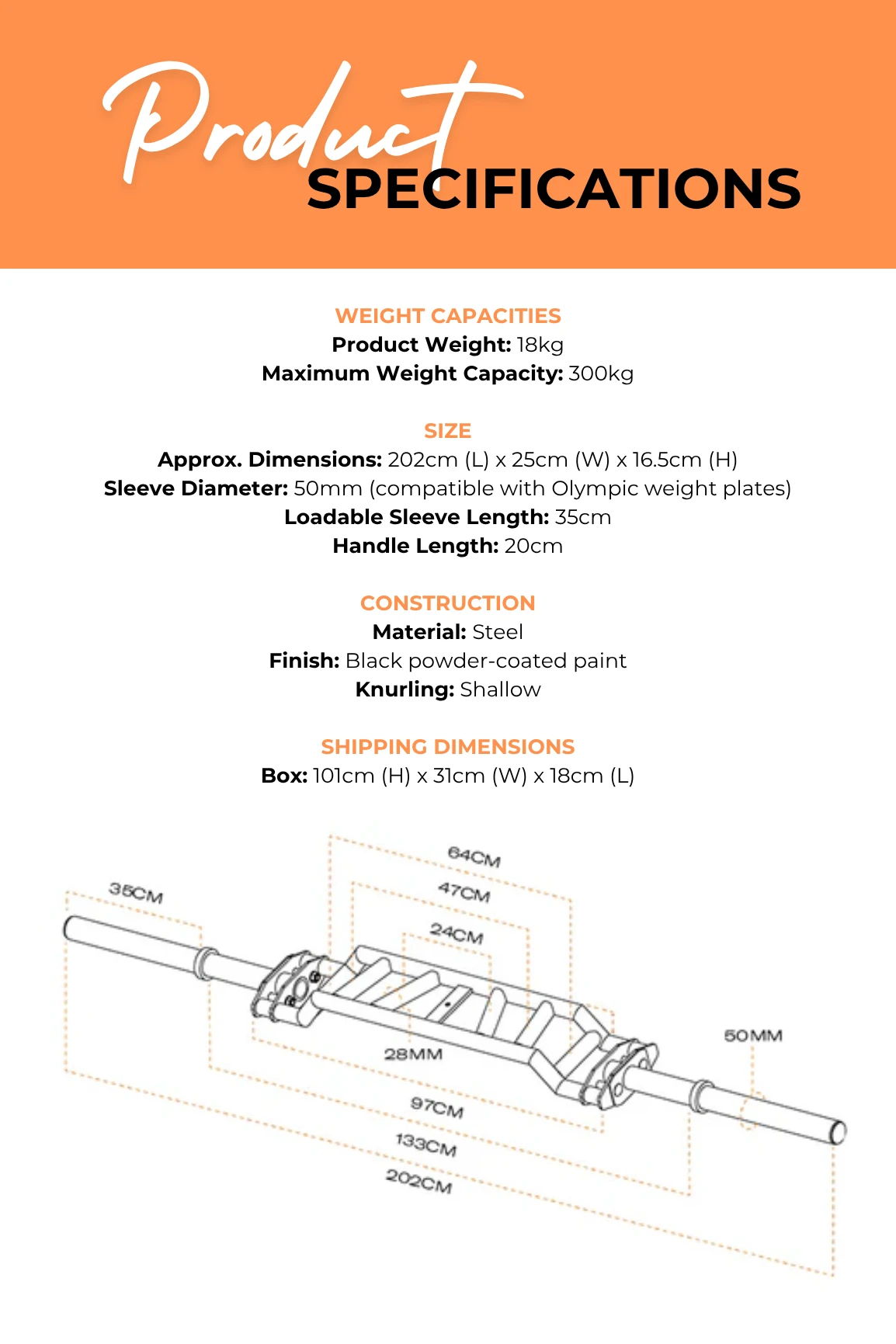 Compatible with Olympic weight plates, this football bar has a 35cm loadable sleeve length and a 300kg weight capacity for optimal upper body training. However, this isn’t what makes it uniquely special.