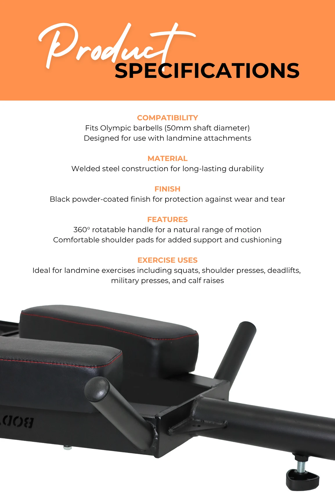 - 50mm Shaft: makes this attachment compatible with any Olympic sized barbell.