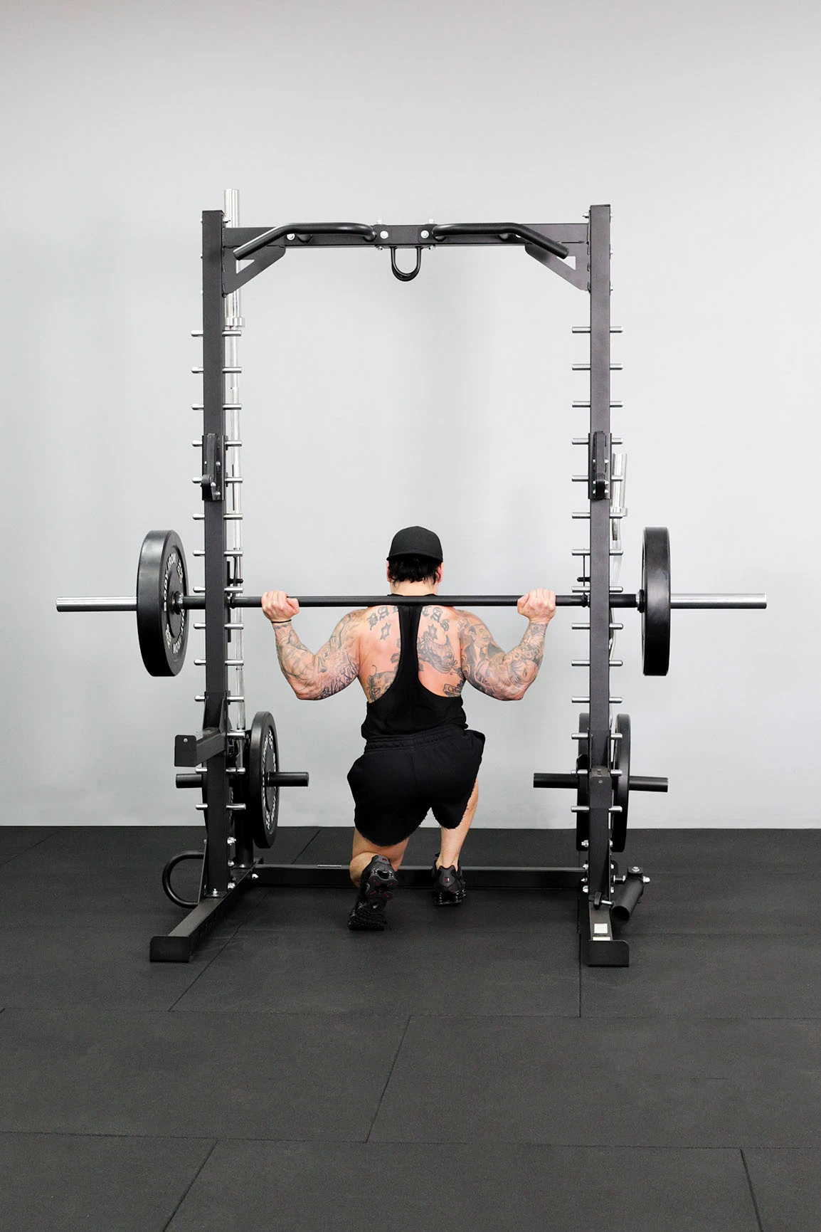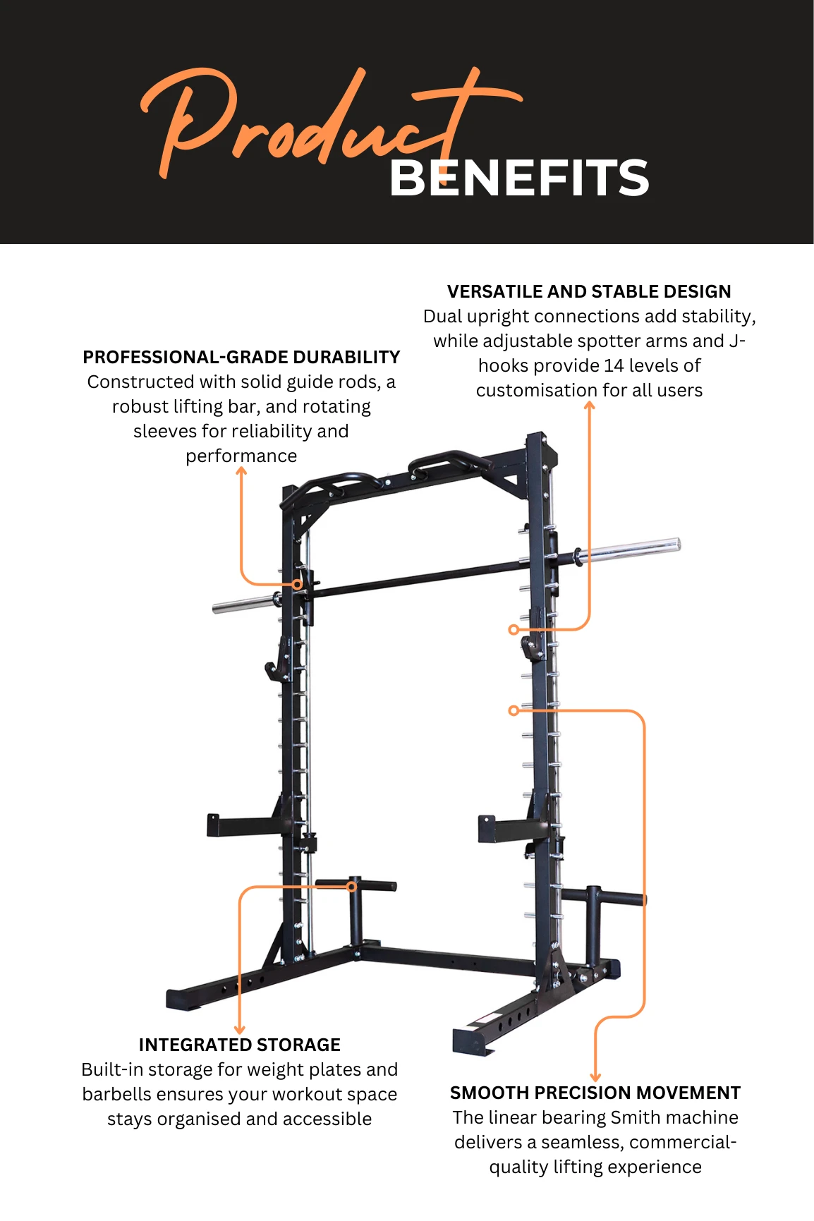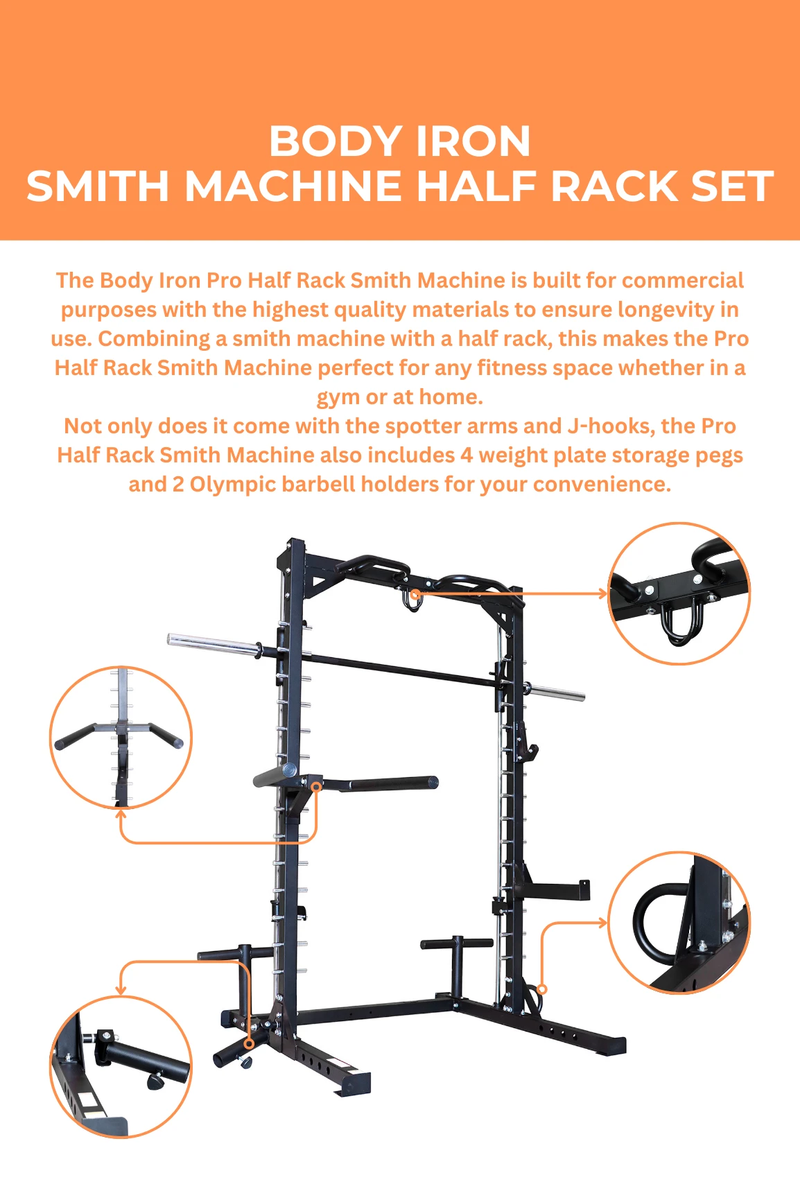 The Body Iron Pro Half Rack Smith Machine is built for commercial purposes with the highest quality materials to ensure longevity in use. Combining a smith machine with a half rack, this makes the Pro Half Rack Smith Machine perfect for any fitness space whether in a gym or at home.