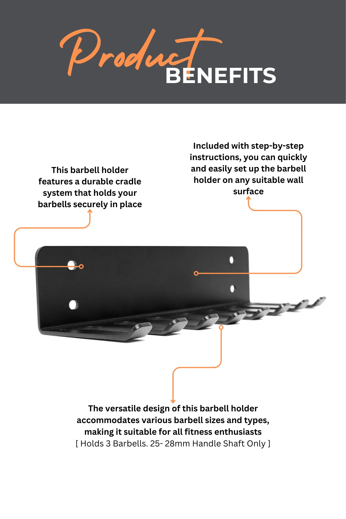 Holds 3 Barbells. 25- 28mm Handle Shaft Only