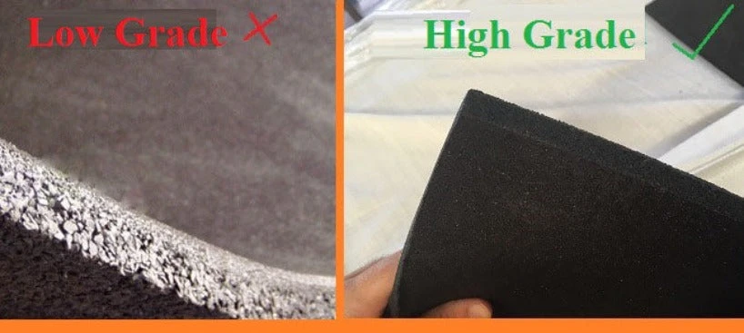 There are many variations of gym rubber flooring. Just because the mats look the same doesn’t mean the quality is the same as well. There are certain factors that determine the quality of the mat. The first thing to check is the grading of the rubber used to make the mats.