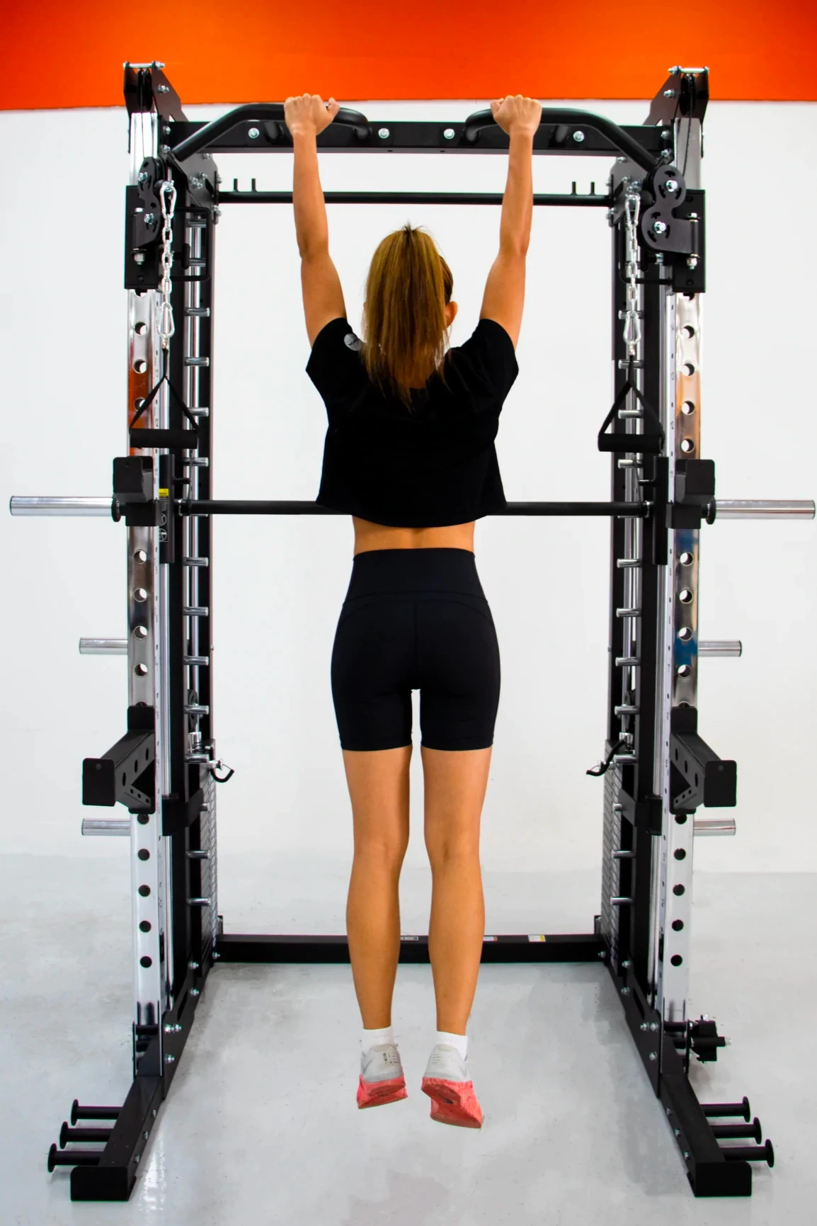 The smith machine is a great way for beginner lifters to learn barbell movements without the weight of an Olympic bar, plus with the extra security of the safety catchers, making it user friendly for everyone!