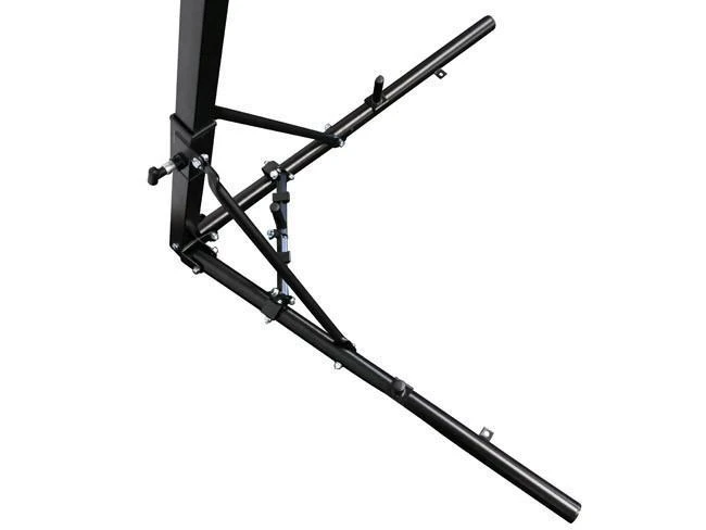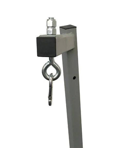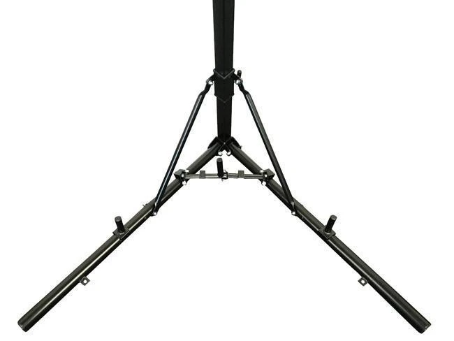 The stand is also equipped with three stabilising pegs to improve the stability of the construction. Place standard weight plates on each stabilizing pegs (weights not included). We recommend having 30KG on each stabilising peg. Pegs can hold plate size up to 10Kg of the standard weight plates size. Stabilising pegs can take 27.5mm – 32mm Standard Weight Plates. You can also use Olympic weight plates. But they will be loose on the stabilizing pegs. Sand bags can also be used.