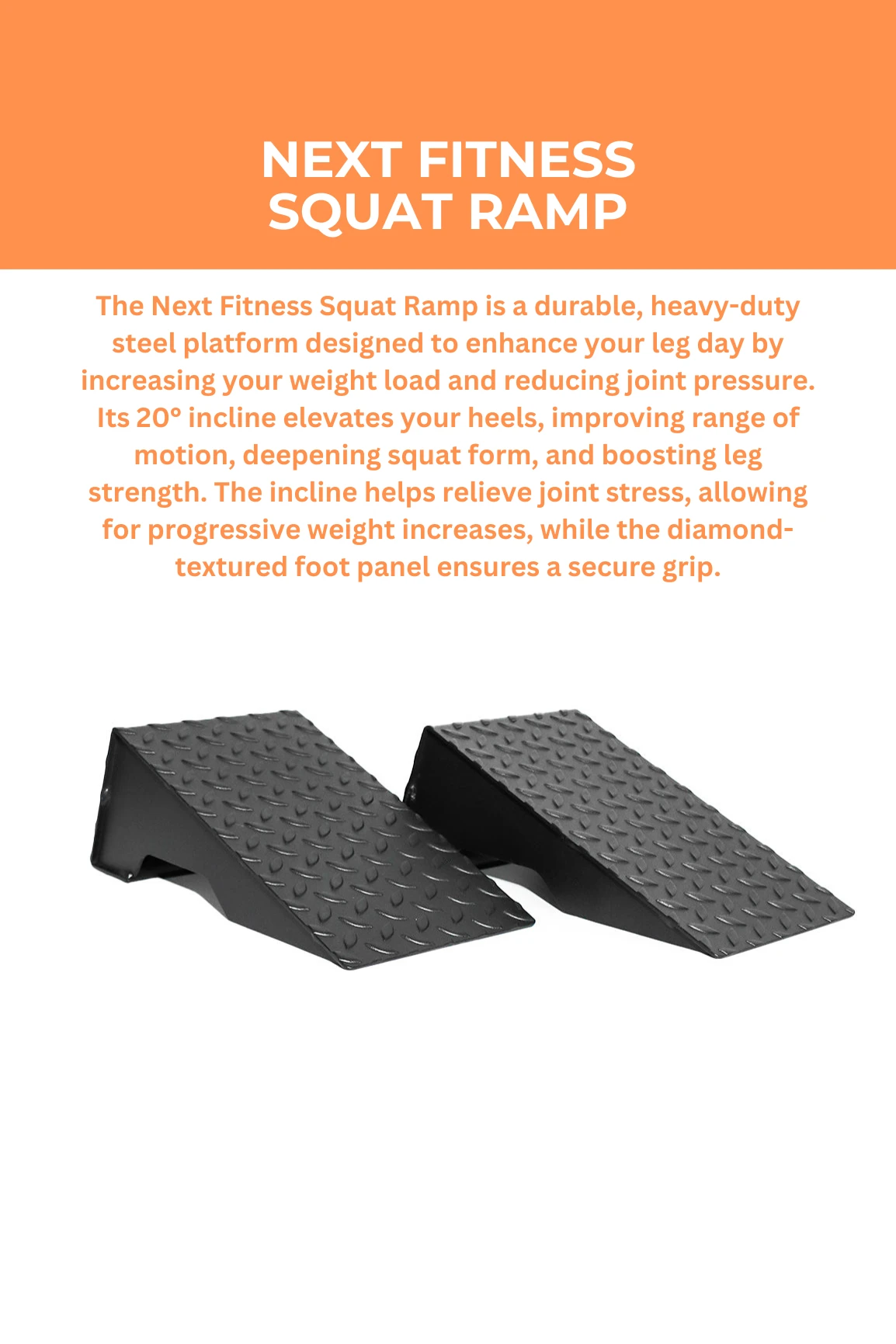 The Next Fitness Squat Ramp is the perfect addition to your next leg day. This platform can help to increase your weight load while also easing the pressure on your joints. Constructed with heavy duty and high quality steel this ensures durability over a long period of time.