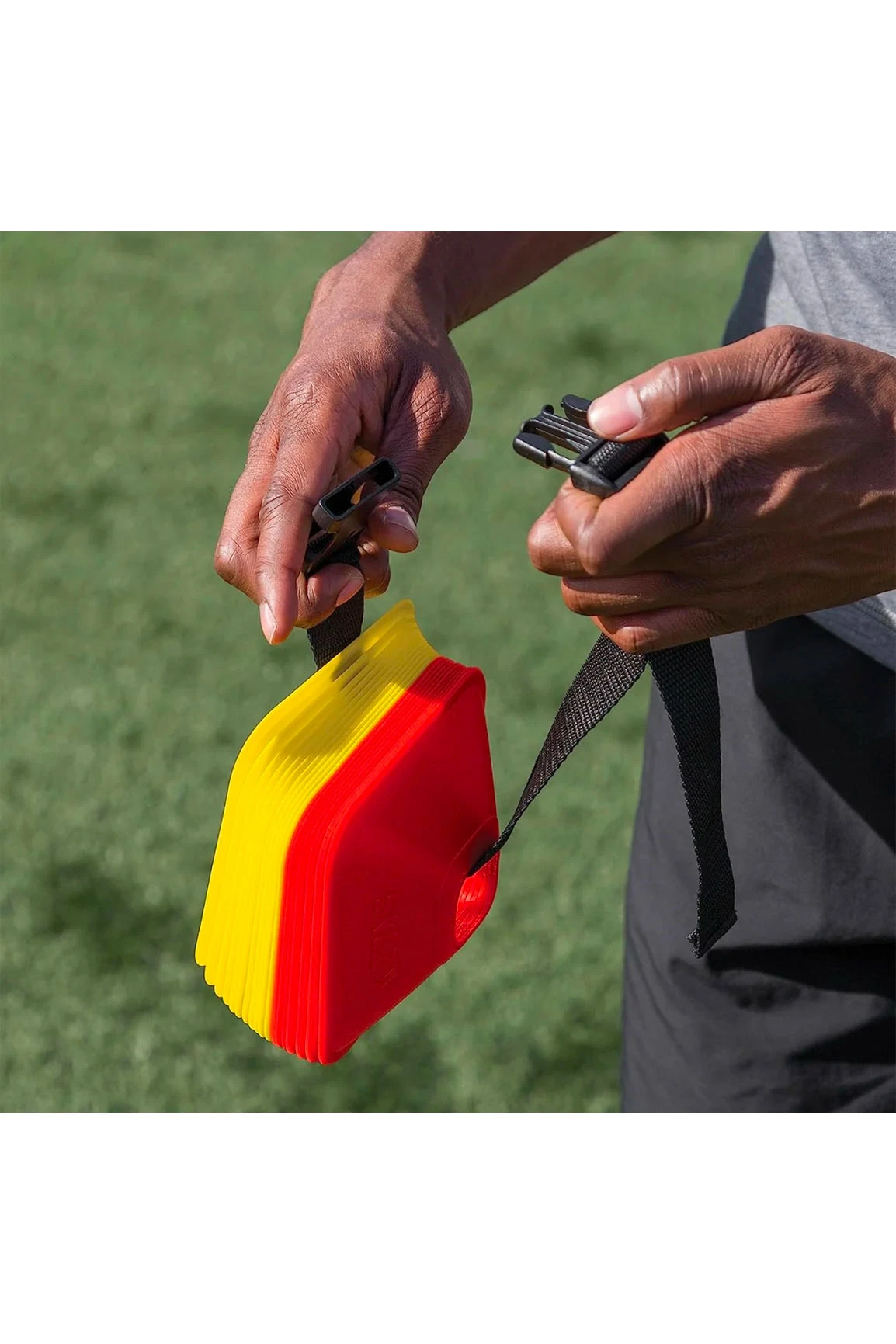 Mini Cones are engineered with a square base for better balance, making them the ideal training aid for a variety of sports and for players of all ages and skill levels. These high-visibility cones can be used for marking training areas, setting up drills and skill exercises, fields, and courts. Constructed for use on a variety of surfaces, the cones can be used on turf, courts, grass, and much more. Designed with durable materials, SKLZ Mini Cones are built to withstand rigorous training sessions, season after season. A carry strap is included for easy transport and storage. The set of 50, 2” high-visibility cones features two colors, 25 yellow and 25 red.